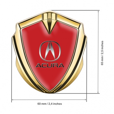 Acura Bodyside Domed Emblem Gold Red Base Metallic Design