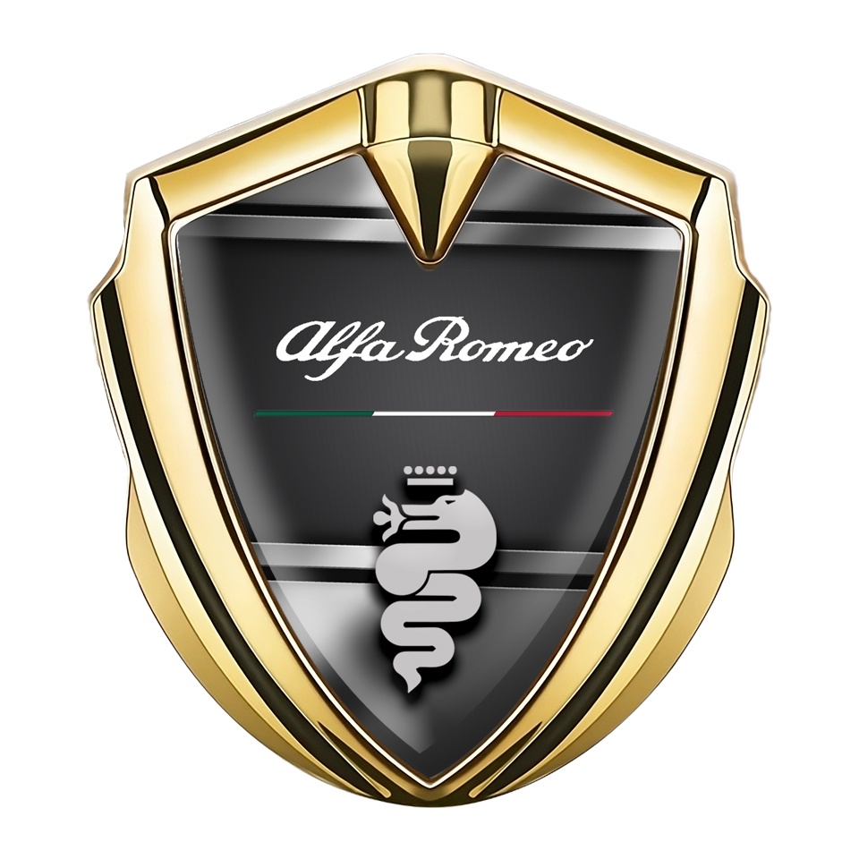 Alfa Romeo 3D Car Metal Emblem Gold Metallic Base Lines Italian Edition