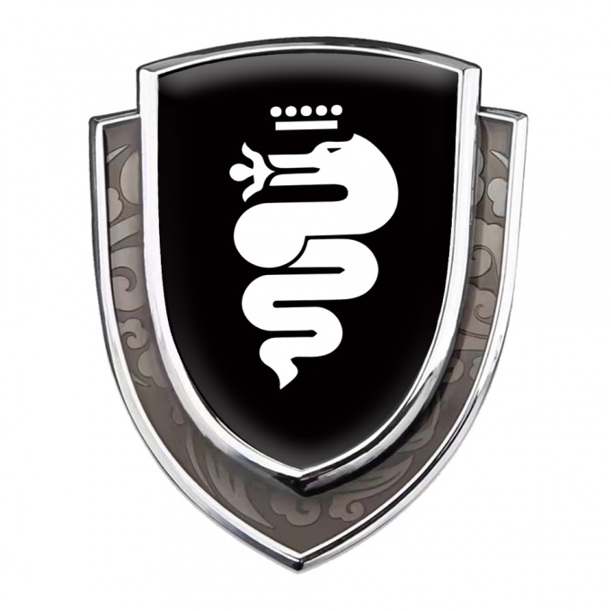 Alfa Romeo Emblem Badge Silver Black Background Big Serpent Design