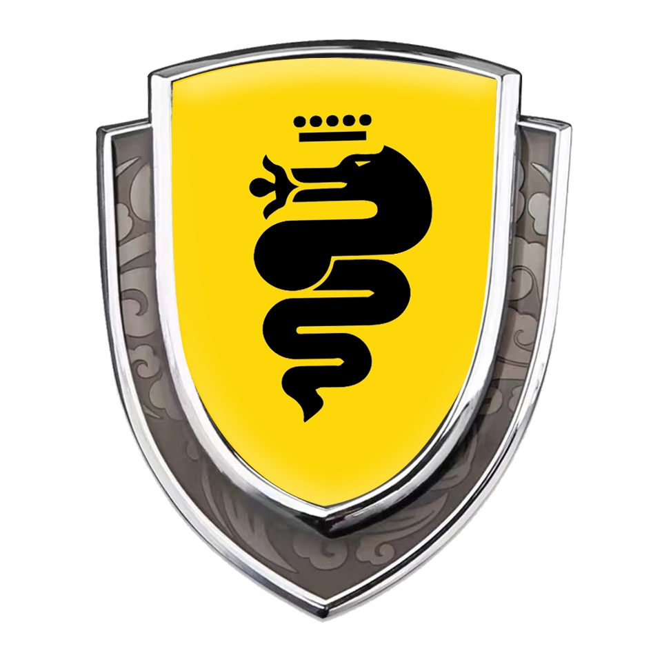 Alfa Romeo Emblem Car Badge Silver Yellow Background Black Logo Edition