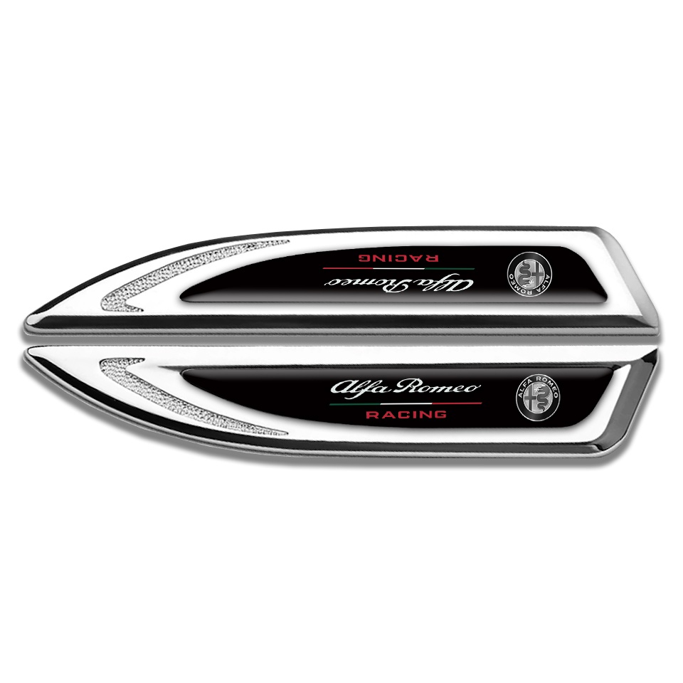 Alfa Romeo Emblem Fender Badge Silver Black Base Racing Edition