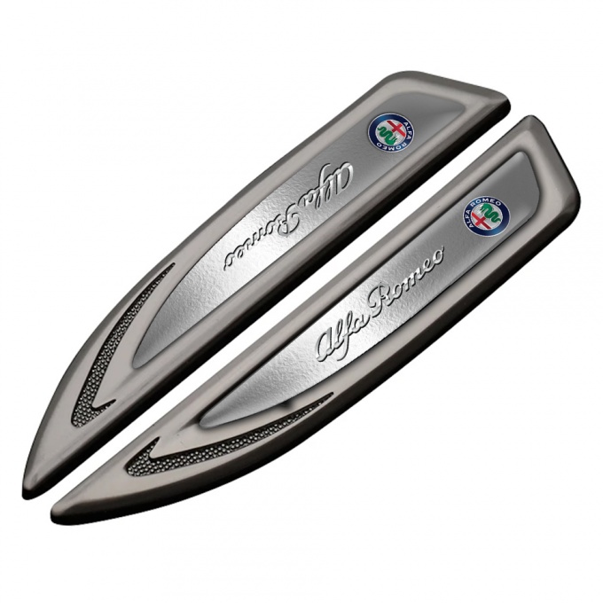 Alfa Romeo Fender Bodyside Emblem Graphite Polished Metal Chrome Edition