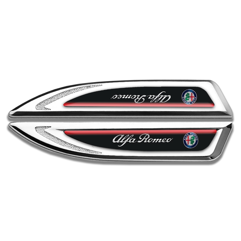 Alfa Romeo Fender Metal Badge Silver Black Fill Red Line Chrome Logo