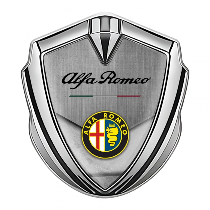 Alfa Romeo Trunk Metal Emblem Silver Italian Flag Color Logo Design