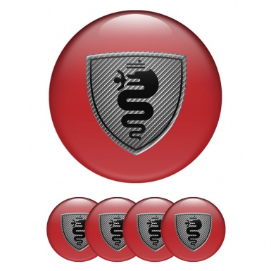 Alfa Romeo Wheel Emblems Red with Carbon Logo 1