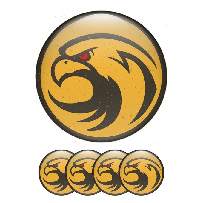 Animals Domed Stickers Wheel Center Cap Yellow Black Head Of An Eagle With A Red Eye