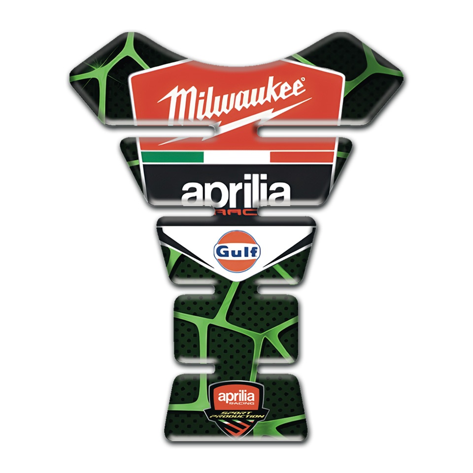 Aprilia Tank Guard Pads Black with Green Patterns Model Milwaukee Style