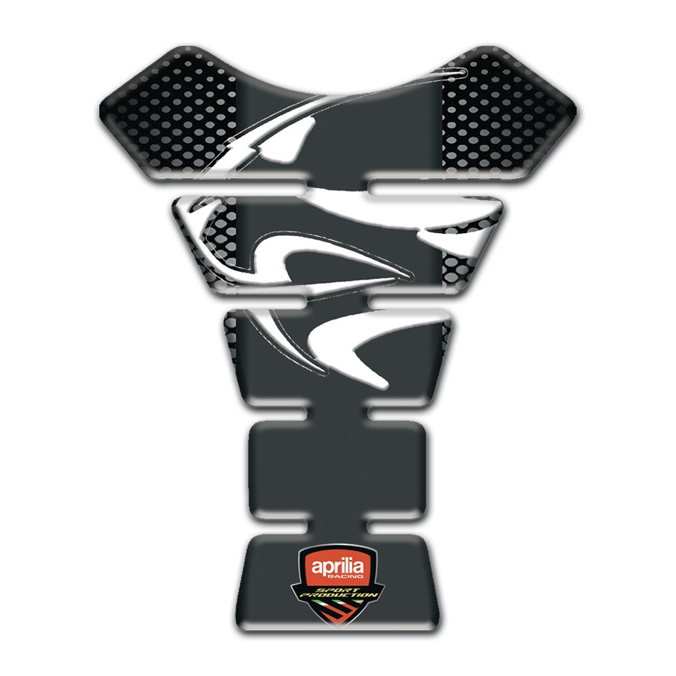 Aprilia Tank Pad Motorbike Black Silver Background White Logo