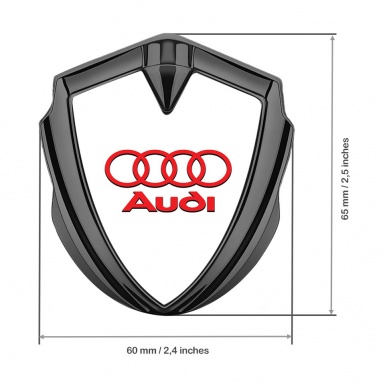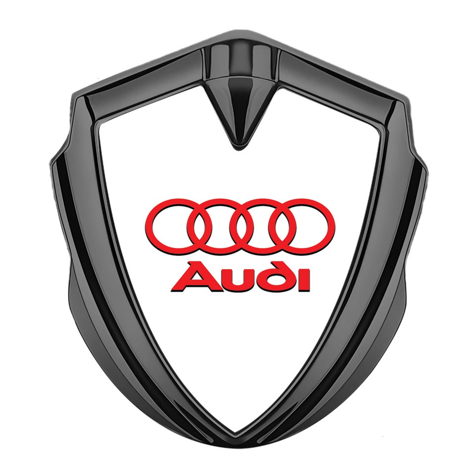 Audi Bodyside Domed Emblem Graphite White Pearl Fill Classic Red Logo