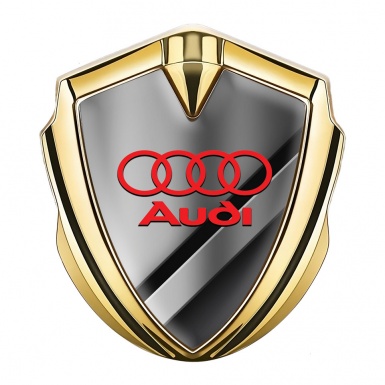 Audi Emblem Car Badge Gold Diagonal Panels Crimson Logo
