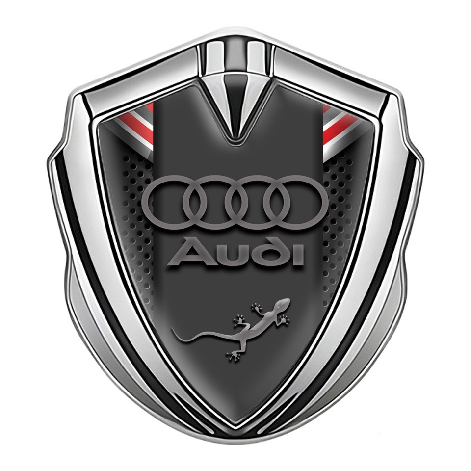 Audi Quattro Metal 3D Domed Emblem Silver Dark Mesh Red Fragments