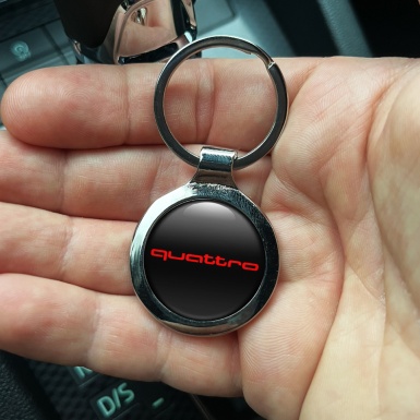 Audi Quattro Metal Key Ring Metal Black Red Logo Design