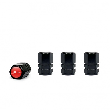 Audi S line Valve Caps Black 4 pcs Red Silicone Sticker with White Logo