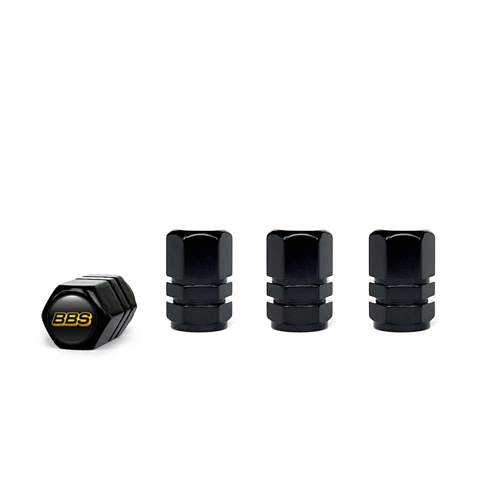 BBS Tyre Valve Caps Black 4 pcs Black Silicone Sticker with Yellow Logo