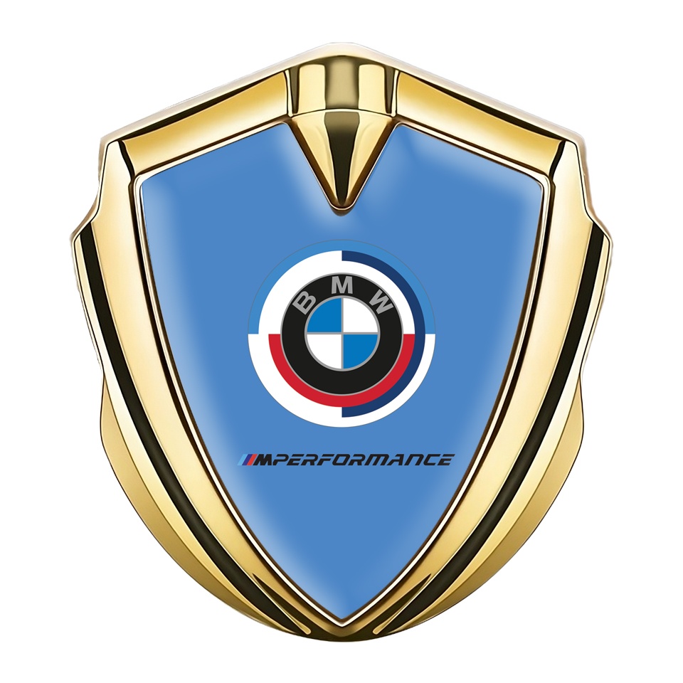 BMW Bodyside Domed Emblem Gold Light Blue Base M Performance