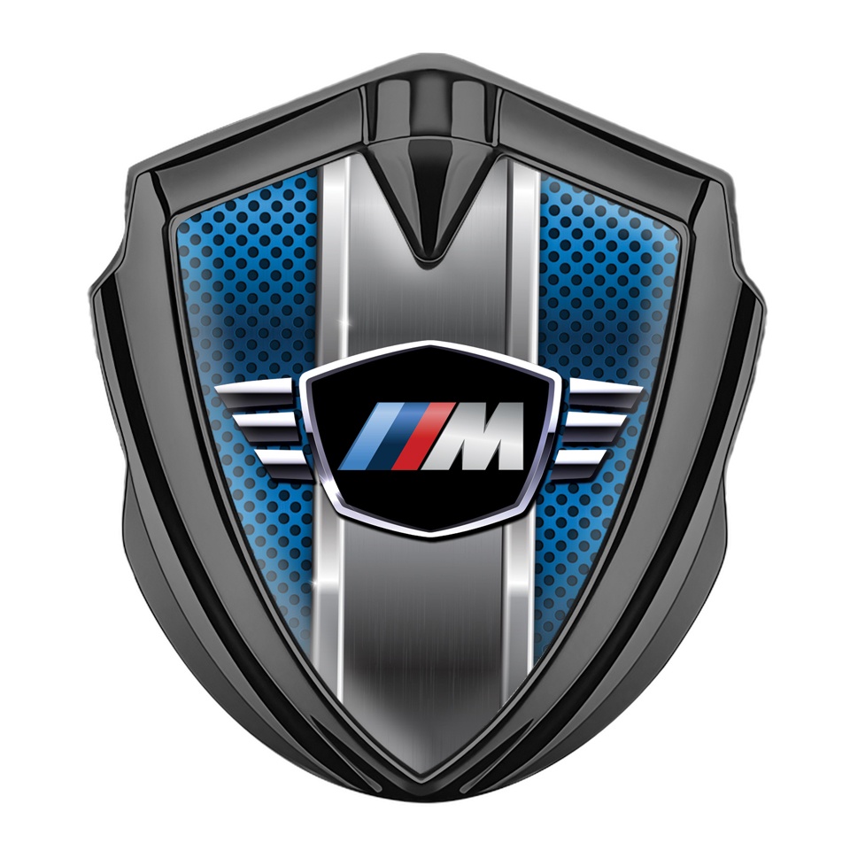 BMW M Power Bodyside Domed Emblem Graphite Blue Grate Center Pilon