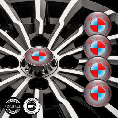 BMW Stickers for Wheels Center Caps Grey Red Circle Design
