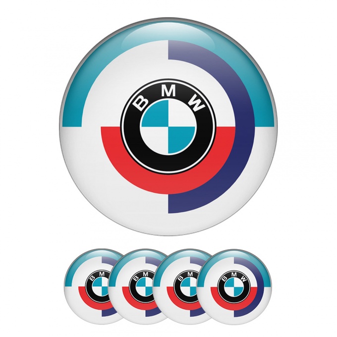 BMW Wheel Center Cap Domed Stickers White 1970