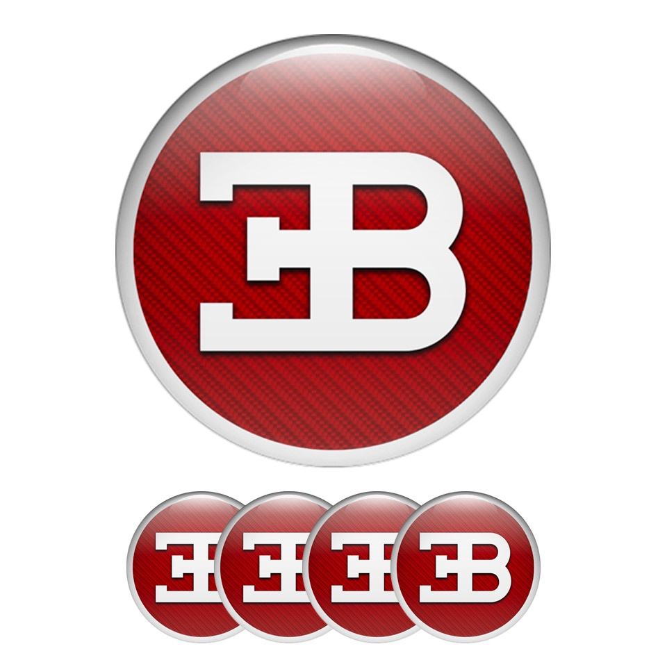 Bugatti 3D Stickers Wheel Center Cap Red Carbon with White Logo