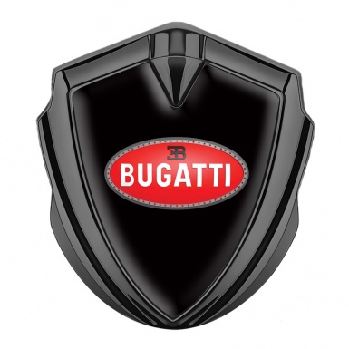 Bugatti 3d Emblem Badge Graphite Black Base Red Oval Logo Design