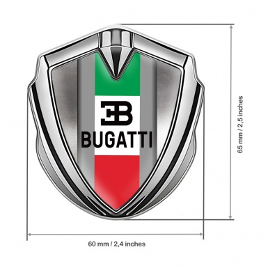 Bugatti 3d Emblem Badge Silver Polished Steel Italian Tricolor Design