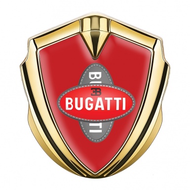 Bugatti Domed Emblem Badge Gold Crimson Base Crossed Logo Design