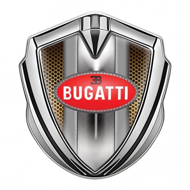 Bugatti Emblem Badge Self Adhesive Silver Orange Grate Italian Motif