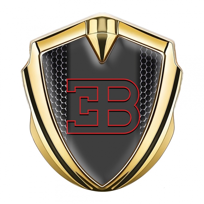 Bugatti Fender Emblem Badge Gold Dark Mesh Red Outline Edition