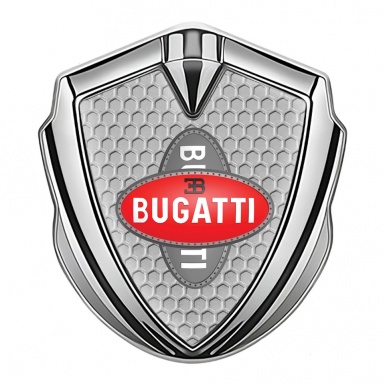 Bugatti Metal Domed Emblem Silver Honeycomb Crossed Logo Edition