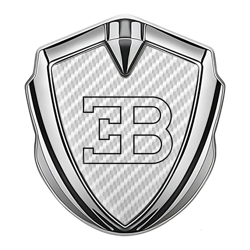 Bugatti Silicon Emblem Badge Silver White Carbon Outline Logo Design