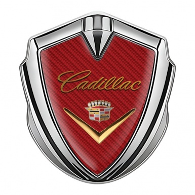Cadillac 3D Car Metal Emblem Silver Red Carbon Design