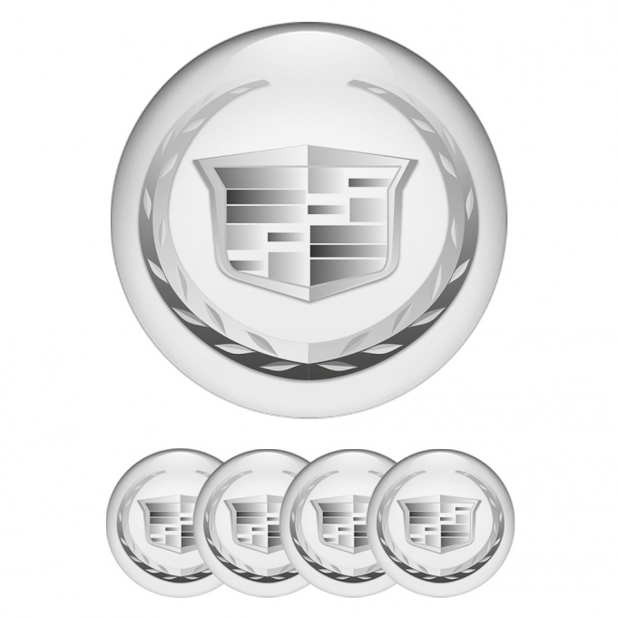 /Cadillac Domed Stickers for Wheel Center Caps White Silver Logo