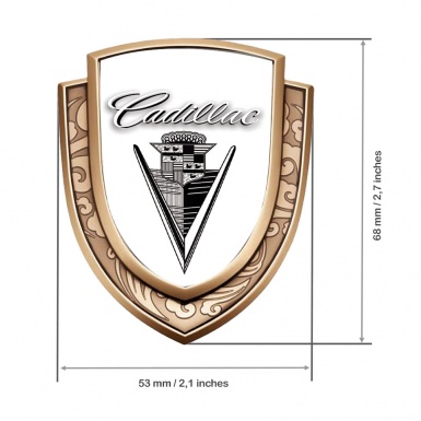 Cadillac Emblem Fender Badge Gold White Base Black Vintage Logo