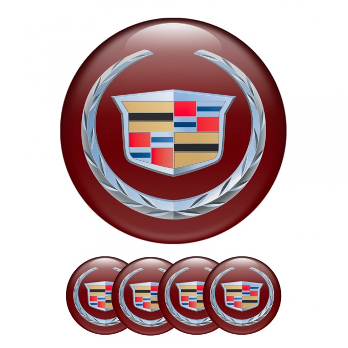 Cadillac Silicone Stickers Wheel Center Cap Dark Red with Wreath Logo