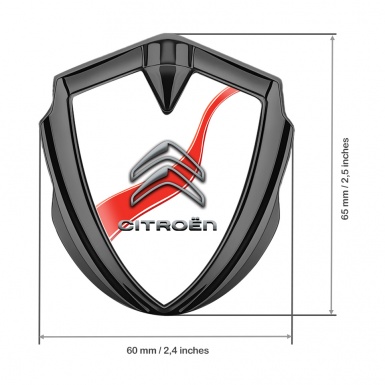Citroen 3D Car Metal Emblem Graphite White Base Red Ribbon Design