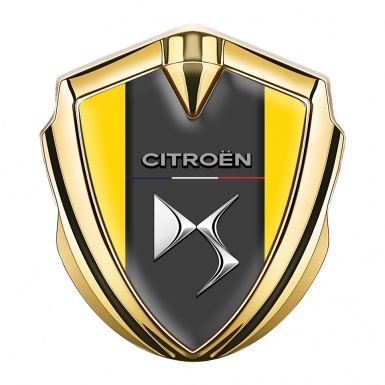 Citroen DS Fender Metal Badge Gold Yellow Base Chrome Logo Effect
