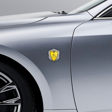 Citroen Fender Emblem Badge Silver Yellow Base Grey Logo Edition