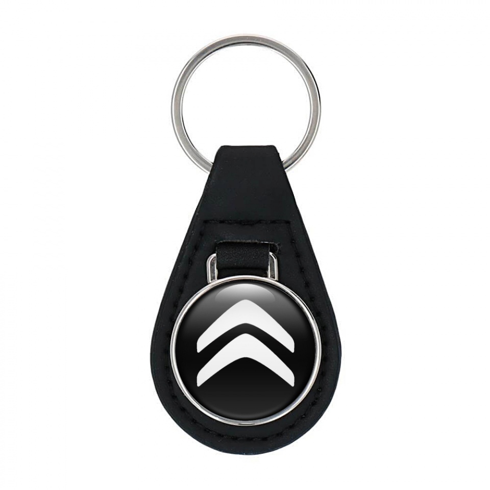 Citroen Leather Keychain Black White Classic Logo