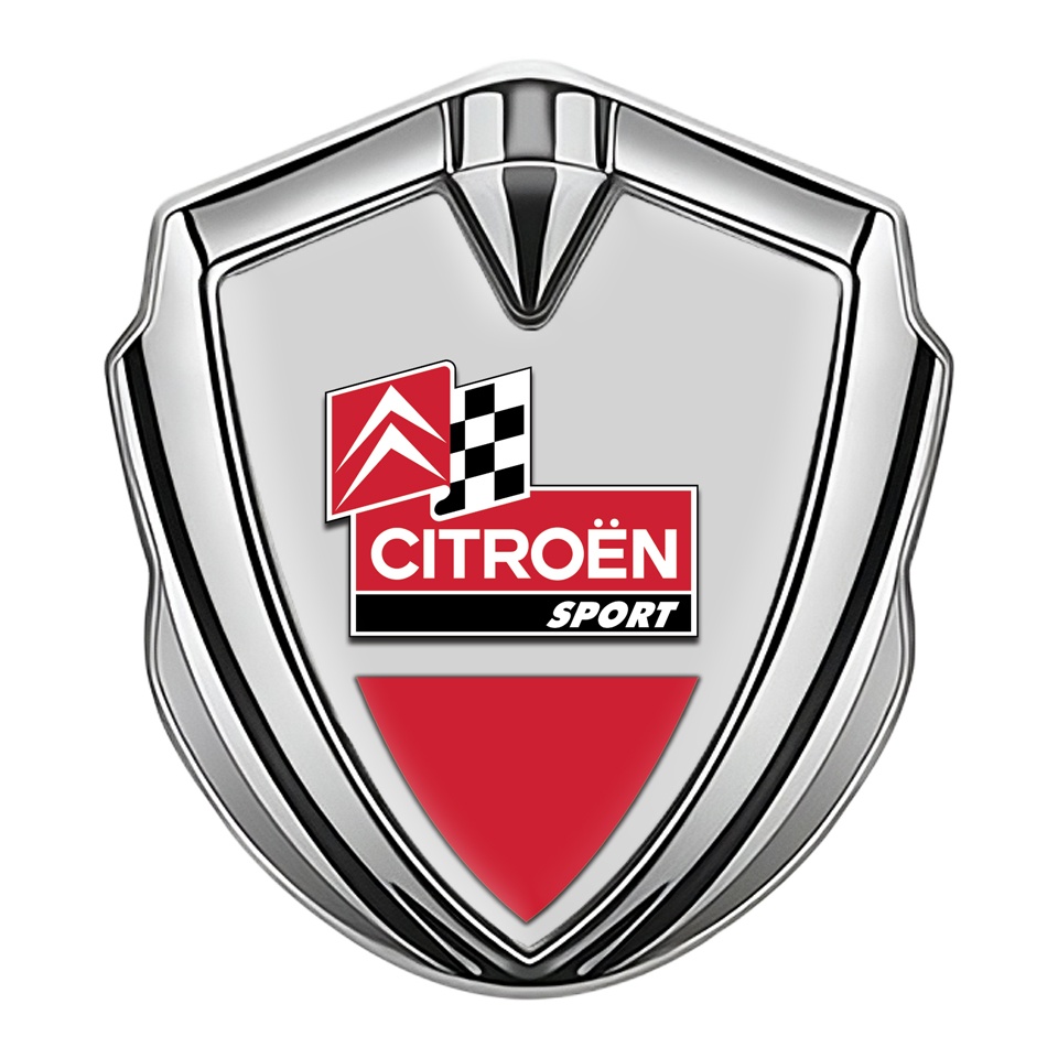Citroen Sport 3D Car Metal Emblem Silver Grey Base Racing Flag Edition