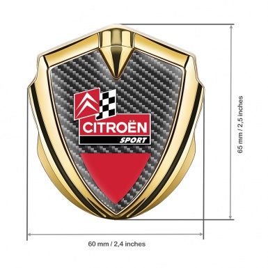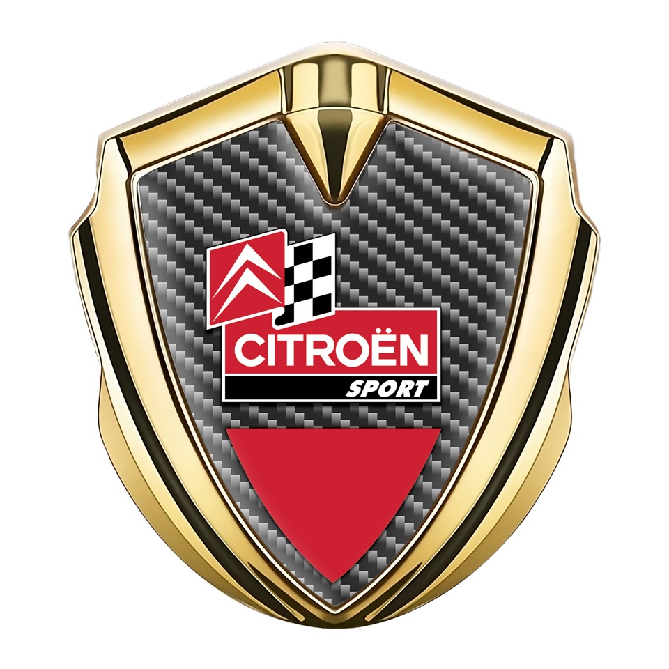 Citroen Sport Bodyside Metal Emblem Gold Dark Carbon Base Racing Flag