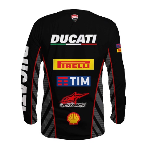 Ducati Racing Long Sleeve T-Shirt Black Grey Stripes Design