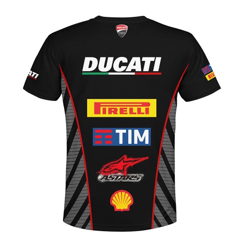 Ducati Corse Short Sleeve T-Shirt Black Grey Stripes Design