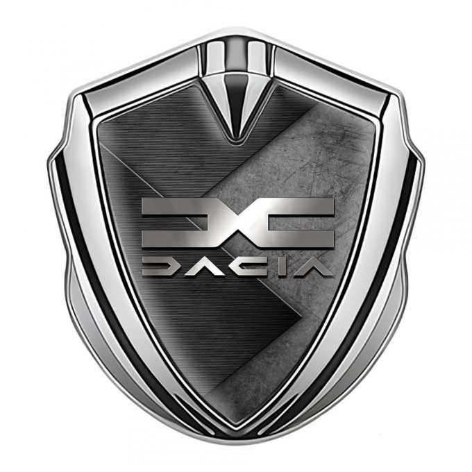 Dacia Silicon Emblem Badge Silver Scratched Surface Metallic Color Logo