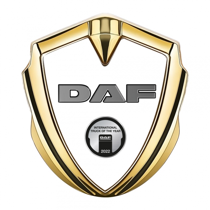DAF Bodyside Domed Emblem Gold White Base Metallic Logo Oval Plaque