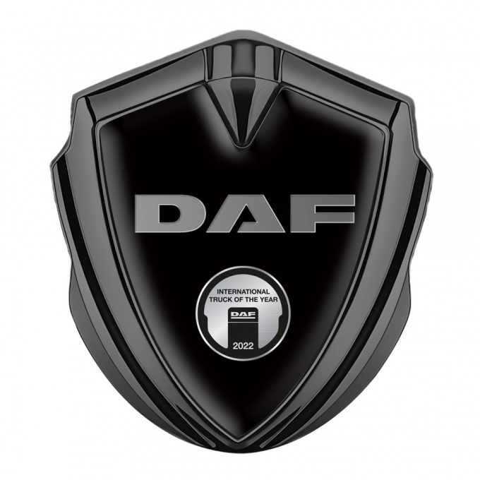 DAF Emblem Fender Badge Graphite Black Base Oval Metallic Plaque Design
