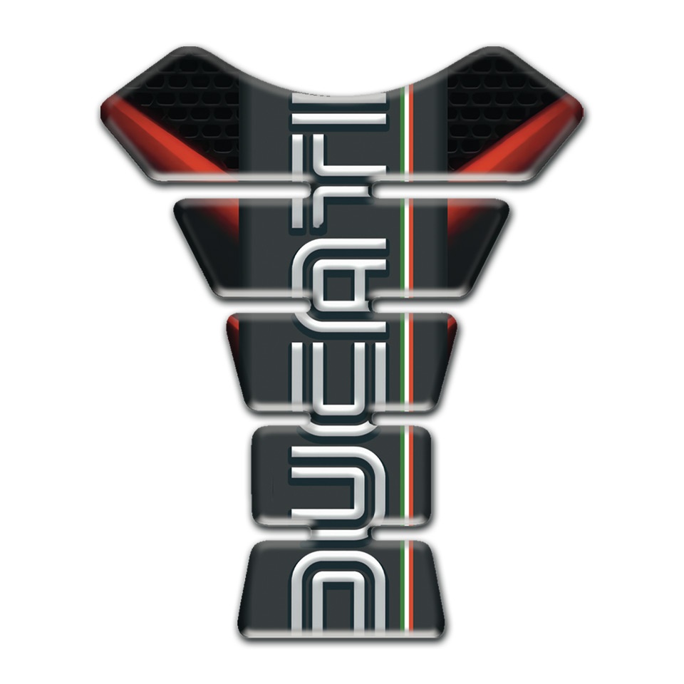 Ducati Tank Guard Pads Black with Red V Shape Decoration Base and White Logo