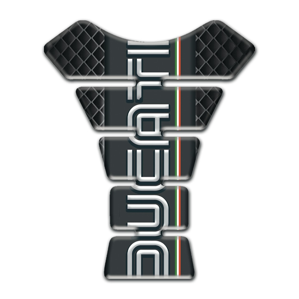 Ducati Tank Guard Pads Dark Mesh base and White Vertical Logo
