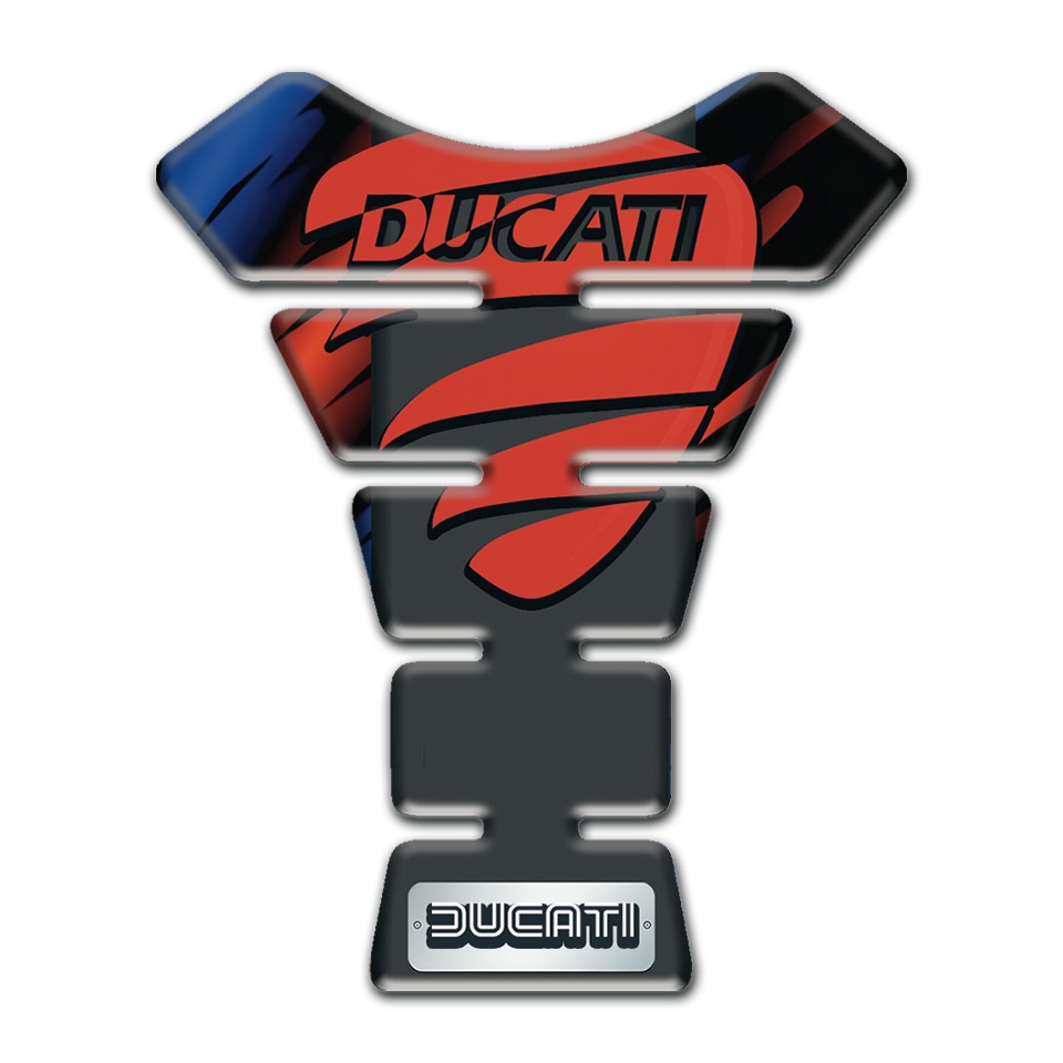 Ducati Tank Pad Motorbike Black Base with Red Blue Decoration and Red Logo