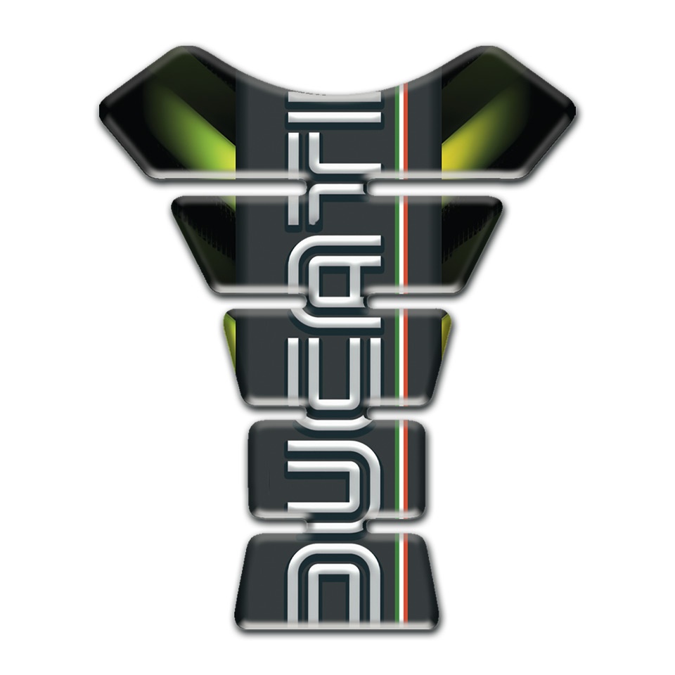 Ducati Tank Protector Black base with Green Lights Base and Vertical Logo Print