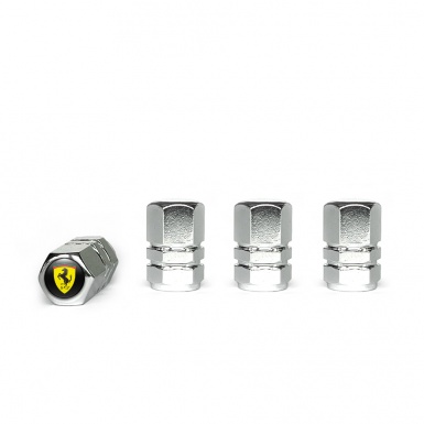 Ferrari Chrome Valve Caps 4 pcs Black Silicone Sticker Classic Logo